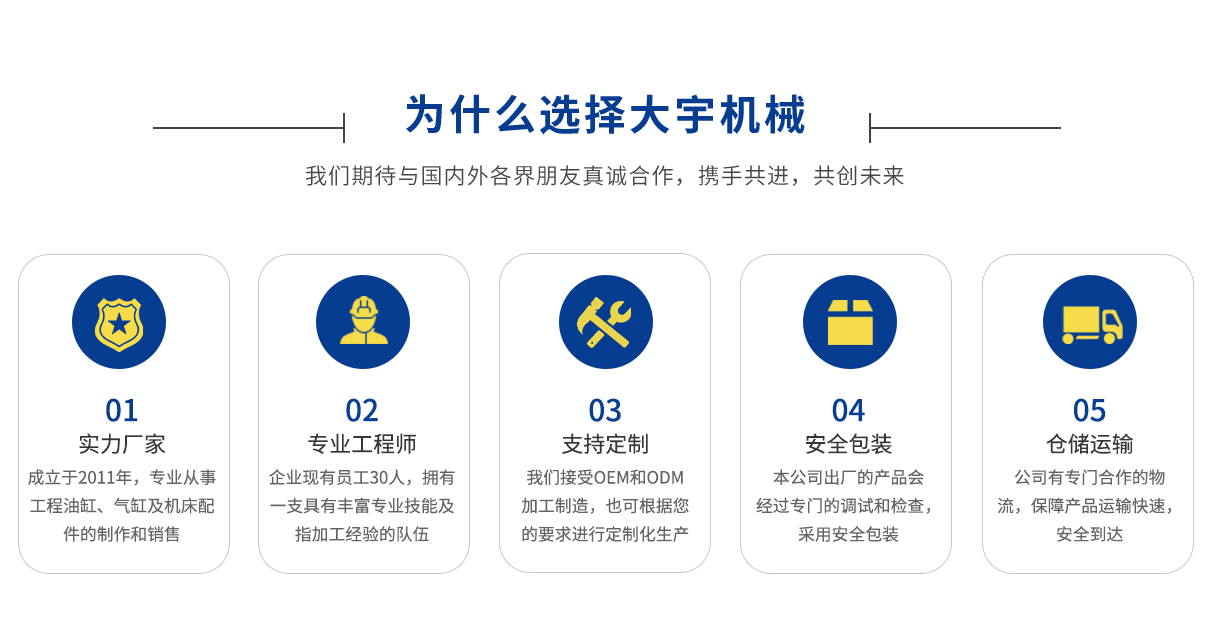 馬鞍山市大宇機械有限公司 INTRODUCTION 馬鞍山市大宇機械制造有限公司成立于2011年06月,注冊資本80萬元人民幣,位于博望區(qū)博望鎮(zhèn)鎮(zhèn)西工業(yè)園區(qū),占地4000平方,主要從事壓料缸,油缸,氣缸,折彎機夾模板及機床配件的制造和銷售。...